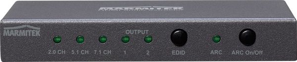 Le Marmitek Connect AE24 UHD 2.0 est un extracteur audio compatible HDMI 4K60 (4:4:4) et HDMI ARC (Audio Return Channel). Grâce à lui, il est possible d'extraire les flux audio d'une liaison HDMI pour les envoyer vers un ampli ou une chaîne dépourvu d'entrée HDMI. Le son peut être renvoyé sous forme numérique via la sortie optique ou sous forme analogique via la sortie mini-jack stéréo. Sa sortie audio HDMI par laquelle il transmet uniquement le son reçu par son entrée HDMI compatible ARC permet également de profiter de la fonction ARC de la prise HDMI d'un téléviseur récent avec un ampli ou une barre de son qui n'est pas compatible ARC.