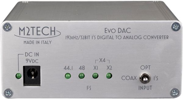 Le convertisseur numérique/analogique M2Tech Evo DAC est compatible avec les flux audio numériques jusqu'à la résolution 32 bits/192 kHz. Doté d'une entrée numérique I2S sur port RJ45 en plus de ses entrées audio numériques optique et coaxiale, il constitue le partenaire idéal de l'interface M2Tech HiFace Evo.