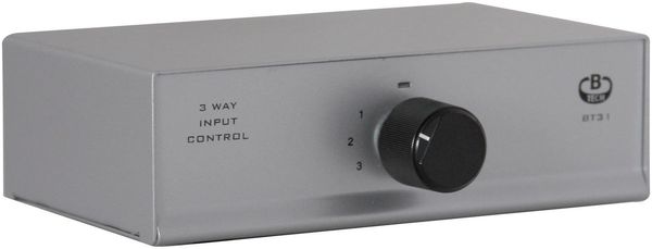 Le sélecteur d'entrées stéréo B-Tech BT31 permet de connecter 3 sources audio stéréo analogiques à un amplificateur intégré. Ce petit boîtier s'avère très pratique à utiliser avec les nouveaux amplificateurs stéréo avec DAC USB ou ultra-compacts, bien souvent équipés d'une seule entrée analogique.