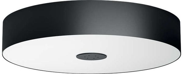 Le plafonnier connecté Philips Hue Ceiling Fair dispose d'un éclairage LED intégré de 39 watts capable d'offrir une luminosité maximale de 3000 lumens. Conçu pour être installé aussi bien dans une cuisine ou un séjour que dans une chambre à coucher, il diffuse une lumière blanche dont la température peut être réglée via une application dédiée (nécessite le module Philips Hue Bridge vendu séparément). L'intensité lumineuse peut également être modulée via la même application ou grâce à l'interrupteur variateur connecté Philips Hue White Dimmer inclus dans la boîte. Celui-ci permet ainsi de choisir parmi quatre ambiances lumineuses programmées par défaut : stimulation, concentration, lecture et détente. L'interrupteur peut être clipsé sur sa base fixée au mur, ou utilisé comme une télécommande pour suivre l'utilisateur n'importe où dans la pièce.