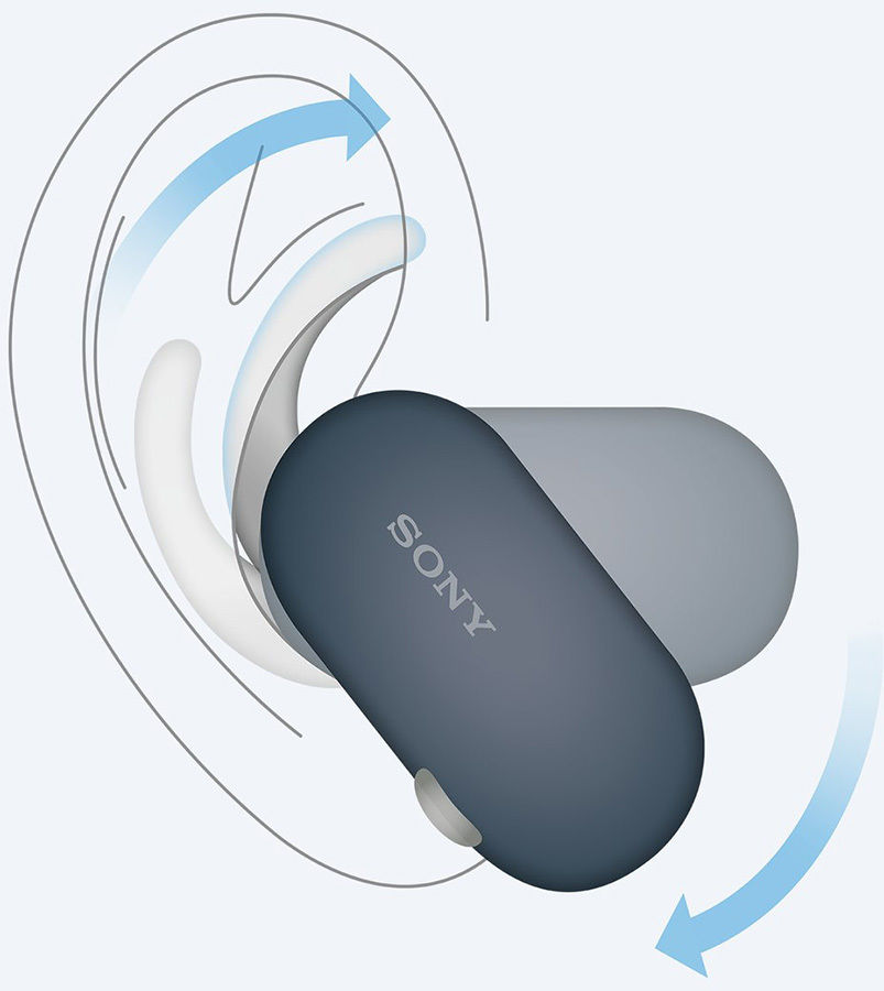 Les écouteurs True Wireless Sony WF-SP900 bénéficie d'une conception ergonomique. Comme chaque oreille est unique, les embouts auriculaires en silicone des écouteurs peuvent être positionnés plus ou moins loin sur la canule par laquelle sort le sont. L'utilisateur peut ainsi adapter la profondeur d'insertion et trouver le réglage idéal pour une tenue parfaite. Par ailleurs, ces écouteurs Sony WF-SP900 sont équipés d'un système de fixation à boucle qui maintient chaque oreillette bien en place.