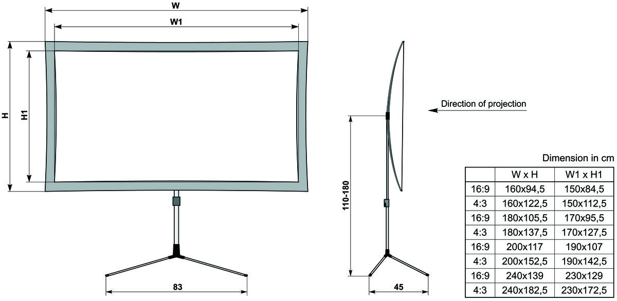 L'écran mobile Oray Easyfixx a été conçu pour être installé en un tournemain et transporté très facilement. Avec seulement 4,5 kg sur la balance, cet écran est tout indiqué pour les projections nomades au format 16/9. Malgré une grande simplicité d'installation, l'écran Oray Easyfixx est très stable, grâce à son pied à quatre branches. Pratique, il est équipé d'une poignée de réglage en hauteur et d'un dispositif de tension de la surface de projection. Enfin, l'écran mobile Oray EasyFixx est livré avec une housse de transport et est disponible dans plusieurs formats.