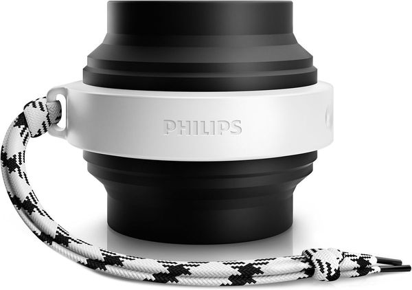 L'enceinte sans fil Philips BT2000 est l'une des enceintes nomades les plus compactes du marché. Mesurant moins de 10 cm de diamètre, elle se glisse facilement dans un sac de voyage, un sac à dos ou un sac de sport. Mieux encore, sa dragonne permet de l'attacher rapidement à la bretelle d'un sac pour se balader en musique. Endurante, sa batterie lithium-polymère assure jusqu'à 12 heures d'autonomie une fois complètement rechargée sur le port USB d'un ordinateur, par exemple (câble fourni).