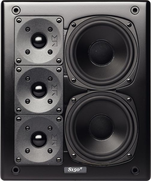 Compacte, cette enceinte reproduit les fréquences comprises entre 77 Hz à 20 kHz, avec une sensibilité de 91 dB pour 1 watt injecté, et une tenue en puissance de 180 watts RMS. Autrement dit, la M&K Sound S-150 sait donner de la voix. Et c'est peu dire. Cette enceinte close de type 2 voies est équipée de 5 haut-parleurs positionnés côte à côte et alignés verticalement. Il s'agit de 2 haut-parleurs de grave-médium de 13 cm fortement motorisés et de 3 tweeters à dôme de 2,5 cm avec technologie ferrofluide et double aimant.