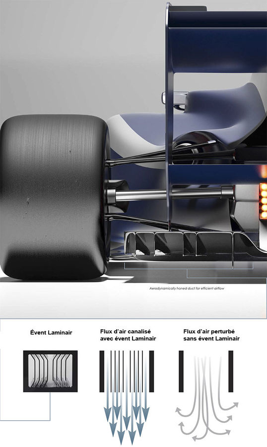L'évent aérodynamique Laminair développé par PMC améliore les performances audio en appliquant à la technologie ATL (Advanced Transmission Line) une ingénierie de haute performance utilisée en F1 ainsi que sur les véhicules qui courent au Mans, destinée à l'origine à créer un flux d’air laminaire encore plus fluide à la sortie de la ligne de transmission.