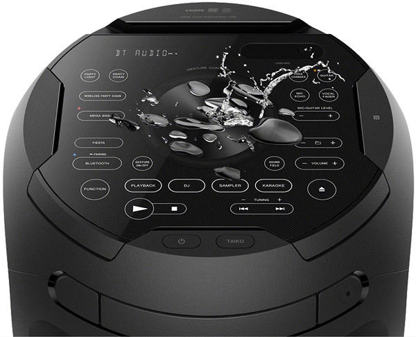 La chaîne Sony MHC-V72D possède une interface de commande gestuelle qui est étanche à l'eau et aux poussières.