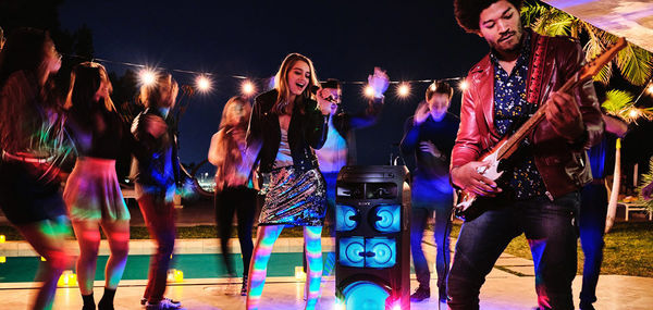 La chaîne Sony MHC-V82D possède deux entrées micro qui vous permettent d'animer la soirée : chantez en tête à tête avec vos invités sur vos morceaux préférés. Ajoutez un soupçon de rock en branchant une guitare sur une entrée ou en utilisant le système comme amplificateur. Trois modes de son pour la guitare sont disponibles : Clean pour obtenir un son clair, Overdrive pour retrouver la distorsion typique d'une guitare électrique et Bass pour optimiser le rendu avec une guitare basse.