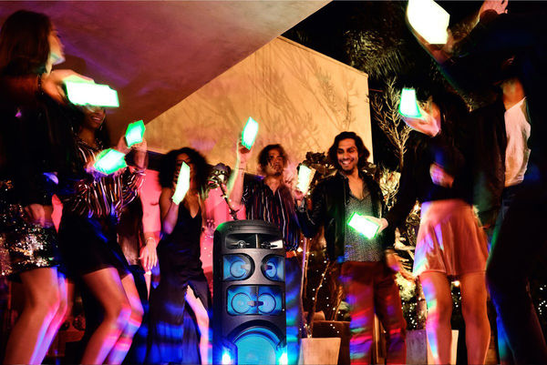 La couleur des lumières mais aussi le mode DJ et le mode karaoké de la chaîne Sony MHC-V82D peuvent être contrôlés via l'application Sony Music Center : grâce à la détection de mouvement, un simple geste du poignet, smartphone en main, suffit.