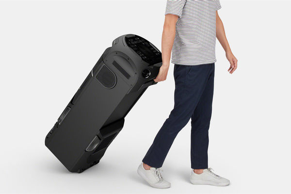 Équipée de roulettes et de poignées de transport pour être emportée et déplacée facilement, contrôlable depuis l'application Sony Music Center, la chaîne Sony MHC-V82D peut également être associée à d'autres chaînes identiques ou compatibles par câble ou via Bluetooth, pour créer une ambiance sonore encore plus puissante et festive.