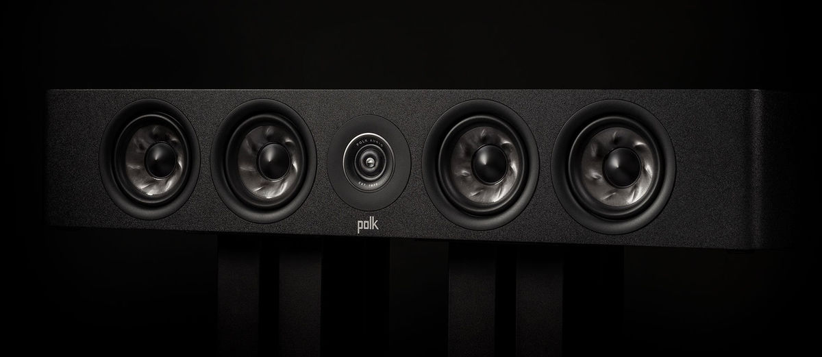 Les quatre haut-parleurs Turbine de l'enceinte centrale Polk R300C apportent des dialogues plus riches et tangibles.