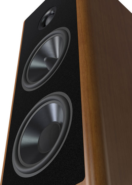 C'est donc tout l'héritage de Jean-Marie Reynaud que l'on retrouve dans l'enceinte Emma. Sa réponse en fréquence a été méticuleusement élaborée, en choisissant des haut-parleurs d'origine française répondant aux exigences de la marque. On trouve ainsi deux haut-parleurs à cône en papier traité de 13 cm de diamètre, l'un dévolu aux basses fréquences et l'autre travaillant exclusivement sur le registre des fréquences médium. Ce dernier dispose d'ailleurs d'une ogive anti-tourbillonnaire en caoutchouc souple et inerte, pour optimiser la diffusion du son. Le tweeter est un modèle à dôme en tissu imprégné de 2,5 cm de diamètre.
