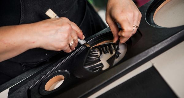 Le travail du bois a toujours fait partie de l'ADN de Sonus Faber. Avec la gamme Olympica, le fabricant fait la démonstration de tout son savoir-faire. La caisse de l'enceinte est réalisée en MDF de forte épaisseur, avec de multiples renforts. Aucune paroi n'est parallèle, afin d'optimiser la circulation du son dans l'enceinte et éviter les réflexions parasites. Les joues en bois massif sont galbées (forme de luth) et couvertes de multiples couches de laque. La face avant et la casquette sont recouvertes de cuir véritable. À l'arrière de l'enceinte se trouve une grille métallique de diffusion latérale des basses fréquences (Stealth Ultraflex).