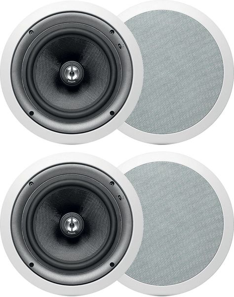 J'ai du me rabattre sur les Custom IC-105 car ça aurait été compliqué de monter plus gros chez moi, mais pour des enceintes de plafond de Ø130, le son est tout simplement excellent, on retrouve bien la qualité Focal, pourtant il y a 10 mètre de câble entre l'ampli (vintage Pioneer) et les Hp, aucune gène. Le système de montage est parfait, ultra simple et ultra costaud. Emballage de chez Focal très soigné . Je valide TOUT !!
