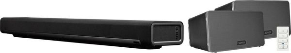 Le pack home-cinéma Sonos PLAYBAR / PLAY:3 (x2) / iPort xPress comprend tout le nécessaire pour profiter des bandes son de ses films sur 5 canaux en réduisant au maximum la présence des câbles et séduit autant par ses qualités esthétiques et acoustiques que sa simplicité d'utilisation.
