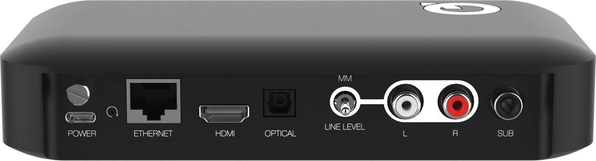 L'enceinte connectée Q Acoustics Q Active 400 Google fonctionne en tandem avec son boîtier transmetteur. Celui-ci a pour rôle de centraliser vos différentes sources pour les diffuser sans fil sur les enceintes Q Acoustics Q Active 400 Google. Pour ce faire, ce boîtier met à disposition une entrée RCA pouvant être configurée en entrée ligne pour relier un lecteur CD, par exemple, mais également en entrée phono pour y connecter une platine vinyle. On trouve également une entrée numérique optique, ainsi qu'une entrée HDMI ARC pour récupérer la piste sonore du programme visionné sur le téléviseur.