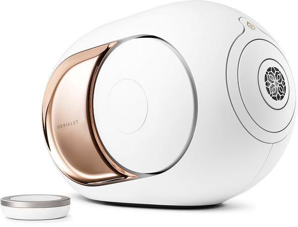 L'enceinte sans fil Devialet Phantom I 108 dB est un modèle 3 voies, équipé de haut-parleurs inédits en aluminium, capable de descendre très bas en fréquence et compatible avec de nombreux services de musique en ligne, par le biais d'une application iOS et Android pour smartphone, tablette et ordinateur. La Devialet Gold Phantom se décline en 3 finitions dont le modèle "Opéra de Paris". Cette édition spéciale est inspirée de l'or vieilli, symbole de la salle de spectacle. Les flans de l'enceinte Devialet Gold Phantom Opéra de Paris sont ainsi revêtus de feuilles d’or posées par les Ateliers Gohard et flanqués de l'insigne "Opéra National de Paris".