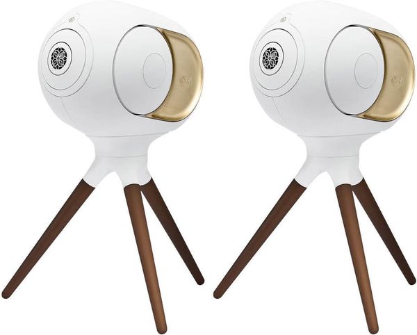 Ce pack comprend deux enceintes connectées Devialet Phantom I 108 dB et deux pieds d'enceinte Devialet Treepod.