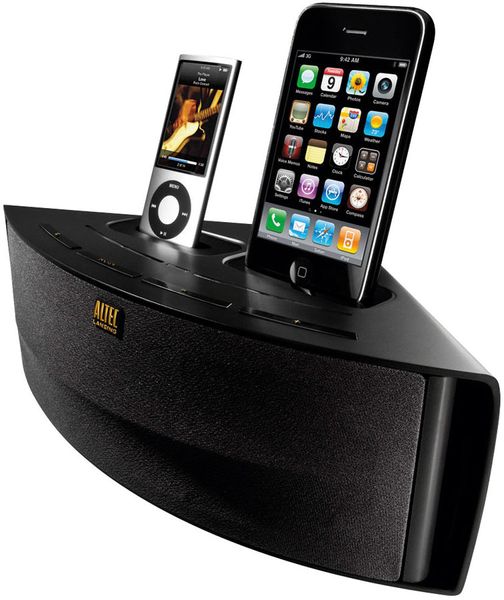 Archétype du produit bien pensé, la mini-chaîne Altec Lansing Octiv Duo M202 est aussi pratique que fonctionnelle. Avec sa forme anguleuse, elle peut être facilement positionnée dans l'angle d'un meuble, ce qui permet un gain de place et une meilleure diffusion du son. Mais surtout, cette mini-chaîne compatible avec tous les iPhone et la plupart des iPod est dotée de deux docks. Elle peut donc piloter autant de baladeurs simultanément et donner accès à une collection musicale élargie. Deux applications gratuites sont téléchargeables sur l'App Store d'Apple pour tirer parti de cette double connectique. La première se nomme Music Mix et permet la lecture aléatoire depuis un ou deux baladeurs. La seconde, Alarm Rock, permet le réveil en musique, avec les titres de son choix. En outre, la télécommande de l'Octiv Duo M202 est très complète et pilote efficacement iPhone et iPod. Musicalement, les deux haut-parleurs large-bande de 5 cm de diamètre produisent un son clair et vivant, avec un registre aigu bien détaillé. L'emploi d'aimants néodyme au puissant champ magnétique n'y est sans doute pas étranger. L'énorme savoir-faire d'Altec Lansing, en matière de sonorisation, fait de cet Octiv Duo M202 l'une des toutes meilleures micro-chaînes pour iPhone et iPod.