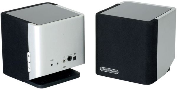 Née de quatre années de conception et d'expertise pour obtenir une vraie qualité de son CD, la paire d'enceintes Monitor Audio WS100 se présente sous la forme de deux cubes d'à peine plus de 12 cm de côté. Le robuste châssis en métal acceuille un coffret bicolore noir et silver avec finition noir laqué sur le dessus. Pratique, le châssis à deux positions permet de modifier l'angle de diffusion du son.