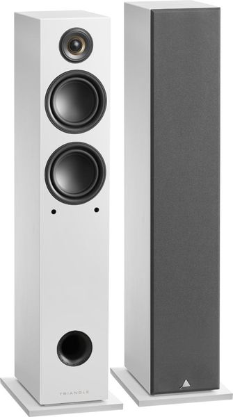 Avec la Triangle Elara LN05A, la marque française révise ses codes esthétiques et livre une gamme d'enceintes au design minimaliste, résolument moderne. Outre qu'aucune vis n'est apparente sur la face avant de l'enceinte, les haut-parleurs sont eux-mêmes dessinés afin de flatter l’œil. Les deux haut-parleurs de grave-médium de 13 cm de diamètre adoptent une membrane incurvée, sans cache-noyau. Chacun est filtré différemment, dans une configuration 2,5 voies. Le tweeter à dôme tissu enduit est cerclé d'une amorce de pavillon, afin d'une part de l'habiller, et d'autre part d'en optimiser le fonctionnement.