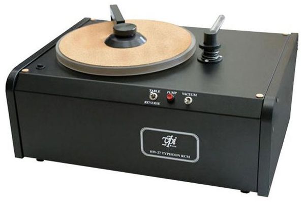 La VPI HW-27 Typhoon est une machine à nettoyer les disques vinyles particulièrement puissante, efficace et simple d'emploi. Elle est livrée avec un flacon de solution de nettoyage qu'il suffit de verser dans son réservoir. Une fois branchée sur le courant secteur, il suffit de poser le disque à nettoyer sur le plateau, de le maintenir en place avec le palet presseur fourni et de mettre en route la machine. Le puissant moteur de la VPI HW-27 Typhoon lance alors la rotation du plateau à 18 tours / minute et le disque est aspergé d'une fine couche de liquide nettoyant, brossé et aspiré, tout cela sans porter atteinte à l'étiquette papier. Le moteur bidirectionnel entraîne le disque dans les deux sens afin que la brosse puisse désincruster efficacement les moindres poussières et impuretés logées au coeur du sillon. Le cycle de nettoyage pour une face prend un peu plus de 30 secondes, séchage inclus. La machine de nettoyage VPI HW-27 Typhoon bénéficie d'une puissance d'aspiration exceptionnelle capable de déloger les saletés les plus incrustées. Les disques vinyles en ressortent comme neufs, débarrassés de toutes les impuretés qui encombraient les sillons.