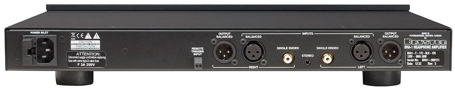 À l'arrière, l'ampli casque Bryston BHA-1 dispose d'une entrée symétrique RCA et XLR pour facilement relier un lecteur CD ou un DAC USB, par exemple. Un entrée aux mini-jack 3,5 mm est également disponible pour relier un smartphone ou un baladeur audiophile. Enfin, l'ampli casque Bryston BHA-1 peut facilement être associé à un amplificateur de puissance externe grâce à une sortie symétrique XLR.