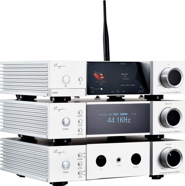 Avec le lecteur réseau Cayin IDAP-8, le DAC Cayin IDAC-8 et l'ampli casque Cayin IHA-8, cet ensemble Cayin assure de profiter au mieux de toutes vos sources et musiques, que ce soit sur la chaîne hi-fi du salon ou au casque.