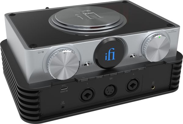 L'ampli casque Ifi Audio iDSD Phantom exploite un contrôle de volume entièrement analogique pour éviter toute dégradation de la résolution, y compris avec les flux DSD. Cette conception rigoureuse, associée à une alimentation généreuse et à des composants à très faible bruit, permet de délivrer jusqu’à 4 676 mW sous 64 ohms, assurant un pilotage sans contrainte des casques les plus exigeants. Pour ce faire, il propose des sorties casque dans les formats les plus populaires : jack 4,4 mm symétrique, XLR 4 broches, double XLR 3 broches et 6,3 mm en phase positive et inversée. L'utilisation d'écouteurs de faible sensibilité est également possible grâce à un contrôle précis du volume et un réglage du gain de 0 à 18 dB.