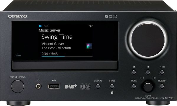 Une fois connecté au réseau local et à internet, l'ampli Onkyo CR-N775D peut aussi accéder à différents services de musique en ligne, tels que Spotify, TIDAL et Deezer (abonnement requis). L'intégration du tuner internet TuneIn permet également d'accéder à des milliers de webradios via l’interface graphique de la chaîne. Les services de musique en ligne et les webradios peuvent être gérés via l'interface de commande et l'écran LCD de l'ampli, mais aussi depuis l'application Onkyo Controller proposée gratuitement au téléchargement par le fabricant. L'ampli Onkyo CR-N775D intègre également un tuner radio numérique DAB+ et un tuner radio FM avec fonction RDS. Une trentaine de stations peuvent être mémorisées en FM et une dizaine en DAB+, qui peuvent être sélectionnées ensuite très rapidement via l'interface de commande en façade ou depuis la télécommande. Le lecteur CD à tiroir frontal permet d’insérer les disques en limitant les risques de rayures et propose plusieurs modes de lecture (répétition, lecture aléatoire). Il est compatible avec les CD audio du commerce mais aussi les compilations maison enregistrées sur CD-R et CD-RW, ainsi que les CD contenant des fichiers MP3 (à condition qu'ils aient été correctement finalisés).