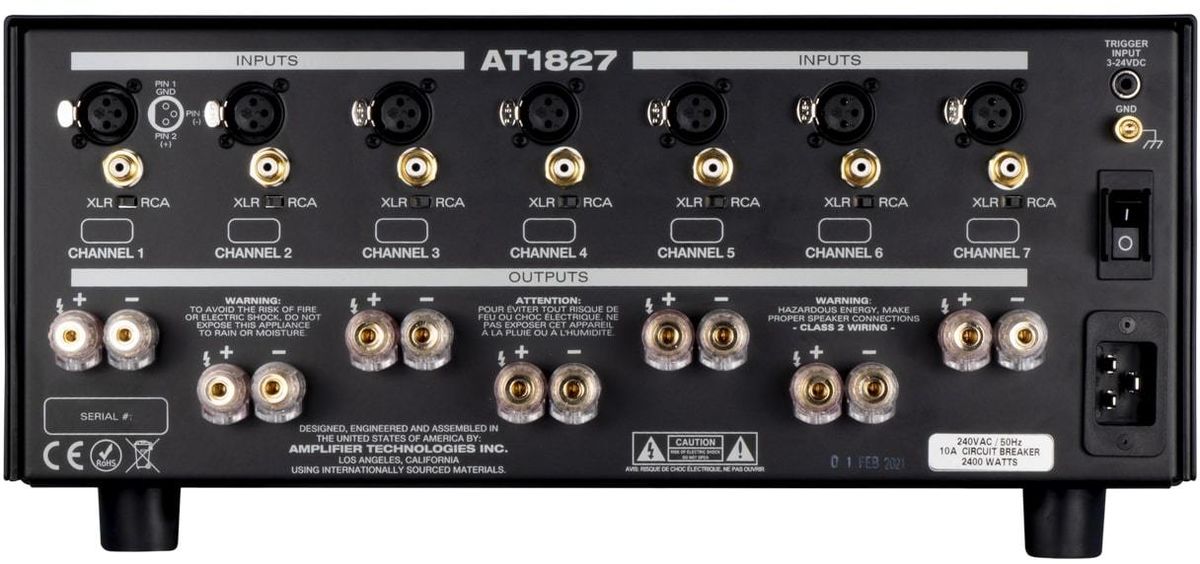 Avec sa forte puissance de 7 x 200 watts sous 8 ohms pour chaque canal, l'ampli ATI AT1827 se montre en mesure d'apporter une alimentation optimale aux enceintes frontales, très gourmande en watts, ainsi qu'aux enceintes surround ou Atmos.  Son alimentation torique associée à une forte capacité courant, ainsi qu'à des composants de haute qualité assure une restitution précise, fidèle et dynamique.