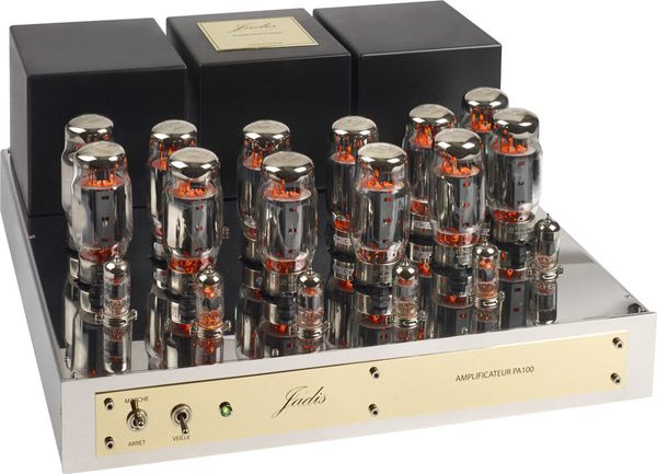Complément idéal des préamplis hi-fi à tubes du fabricant français, l'ampli de puissance Jadis PA100 peut également être associé à tout préampli ou ampli home-cinéma avec sorties pre-out.