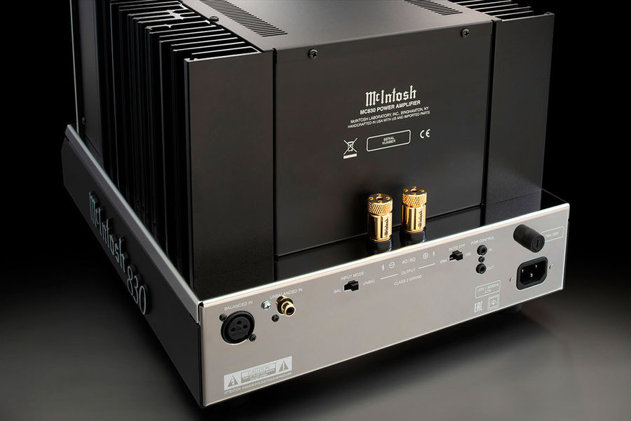 L'ampli de puissance McIntosh MC830 est équipé d'une entrée asymétrique RCA et d'une entrée symétrique XLR pour facilement être associé à tout pré-amplificateur. Il adopte des borniers d'enceintes brevetés Solid Cinch qui permettent de solidement fixer les câbles pour les empêcher de se desserrer et de provoquer éventuellement un court-circuit. Ces borniers sont plaqués or pour éviter la corrosion et garantir une parfaite transmission du signal sonore. Ils sont compatibles avec les câbles de forte section, les fourches et les fiches bananes. Enfin, des entrées et sorties Trigger permettent d'allumer simultanément les différents éléments compatibles de l'installation.