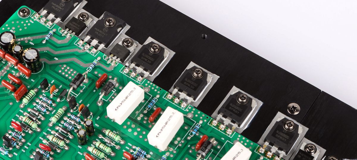 L'amplificateur de puissance Tonewinner AD 2500 PRO est largement surdimensionné pour ne jamais se mettre dans ses retranchements. L'étage de puissance met en oeuvre huit paires de transistors haute puissance NJW0281G et NJW0302G. Ces modèles conçus par la société Onsemi sont sélectionnés pour leur réponse en fréquence étendue, leur très grande transparence, contribuant à la reproduction des moindres informations sonores. Cet ensemble permet à l'ampli Tonewinner AD 2500 PRO de délivrer une très forte puissance de 2 x 500 W sous 8 ohms en mode stéréo. Il fonctionne en classe AB pour concilier idéalement puissance, chaleur et naturel.
