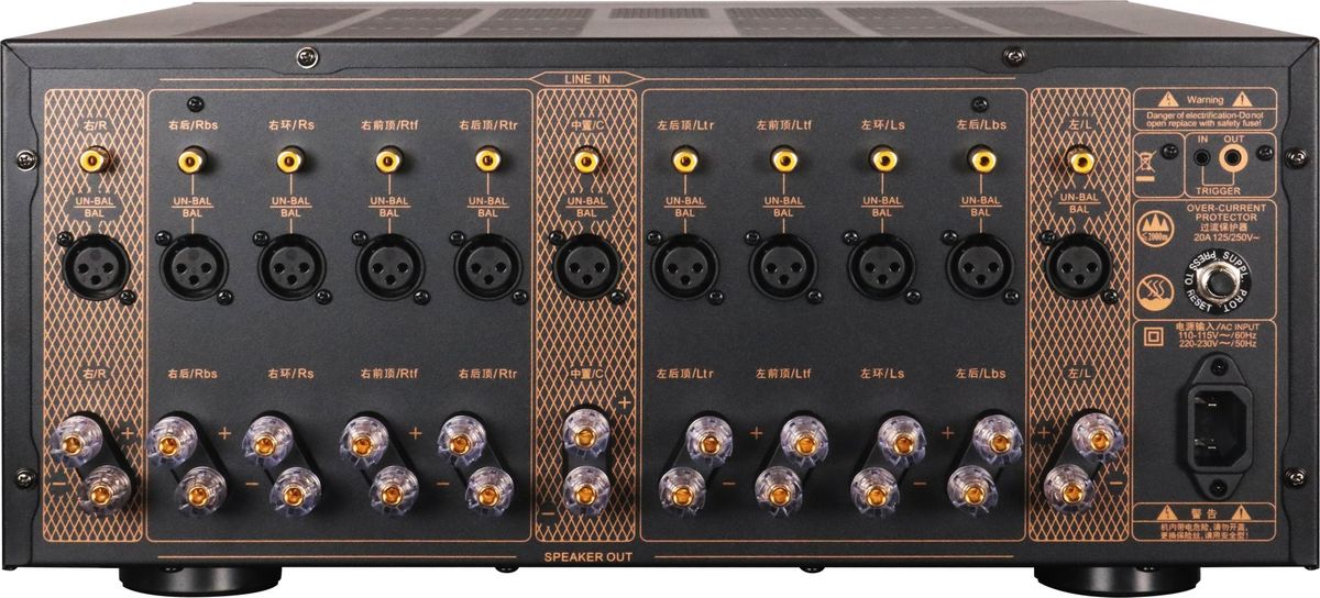 Avec ses 11 canaux, l'amplificateur de puissance Tonewinner AD 8300 PA est idéal pour alimenter toutes les enceintes d'une installation home-cinéma moderne, y compris les voies Dolby Atmos et DTS:X. Chaque canal est parfaitement calibré selon les enceintes à alimenter. Les canaux gauche, droit et central qui sont les plus sollicités en home-cinéma profitent ainsi d'une très forte puissance de 320 watts sous 8 ohms. Les huit autres canaux bénéficient quant à eux d'une puissance de 150 watts sous 8 ohms, ce qui est parfait pour des enceintes surround ou les voies verticales. Ainsi, l'ampli Tonewinner AD 8300 PA peut totaliser une puissance colossale de 2160 watts, gage de sensations fortes.
