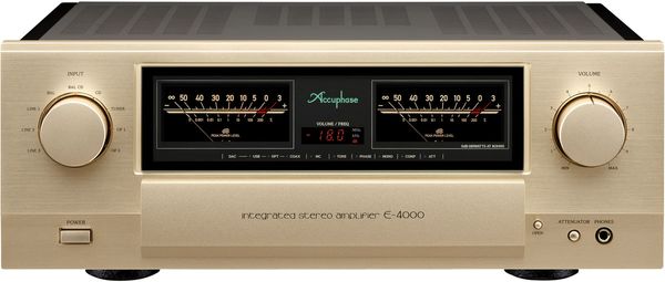 Depuis de nombreuses années, le fabricant nippon Accuphase se distingue par ses électroniques qui mêlent un design vintage et des solutions techniques de pointe pour pousser toujours plus loin les limites de la haute-fidélité. Cet intégré Accuphase E4000 incarne cette philosophie avec une conception rigoureuse et soignée qui fait appel à des composants de choix mis en œuvre de manière simple et efficace. Ainsi, l'étage d'amplification de puissance de cet ampli exploite quatre transistors MOS-FET montés en configuration push-pull parallèle pour les canaux gauche et droit. Ils sont couplés directement à de larges dissipateurs thermiques pour maximiser les performances. Ils bénéficient d'un circuit d'alimentation constitué d'un grand transformateur torique et de deux énormes condensateurs de filtrage de 40 000 μF chacun, l'ensemble garantissant une très haute puissance disponible avec une stabilité optimale.