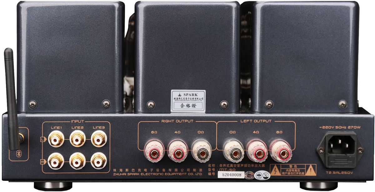 L'ampli Cayin MT50 Plus KT88 appartient à la nouvelle génération des électroniques à tubes. Outre des entrées ligne classiques, cet intégré à tubes dispose d'un récepteur Bluetooth CSR8670 pour faciliter la diffusion des musiques à partir d'un smartphone, d'une tablette ou d'un ordinateur, par exemple. Les codecs AAC et SBC assurent une prise en charge optimale de toute source Bluetooth, tandis que le codec aptX garantit une diffusion à haut débit pour une qualité d'écoute optimale.