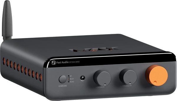 L'ampli Fosi Audio BT20A MAX marque une montée en gamme significative dans l’univers des amplificateurs compacts du fabricant. Conçu autour de la puce Texas Instruments TPA3255 et intégrant une architecture à rétroaction PFFB (Post Filter Feedback), il vise une restitution plus précise, plus stable et nettement plus puissante que les modèles BT20A classiques. Compatible avec des alimentations de 32 à 48V, il s’adapte à différents besoins en puissance, tout en conservant un format compact et une grande polyvalence, avec récepteur Bluetooth compatible LDAC, aptx HD et aptX Lossless, ainsi qu'une double entrée RCA pour la connexion d'un lecteur réseau, d'un lecteur CD ou d'une platine vinyle pré-amplifiée, par exemple.