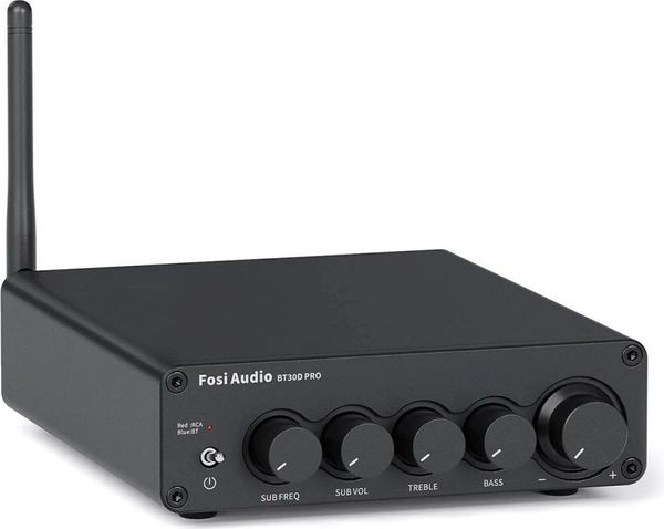 L'ampli Fosi BT30D PRO est un modèle 2.1 canaux conçu pour alimenter une paire d'enceintes et un caisson de basses passif. Il peut développer une forte puissance de 2 x 125 W sous 4 ohms pour les enceintes et de 250 W pour le caisson de basses. Son réglage de la tonalité avec fréquence de coupure et volume du caisson assure une adaptation parfaite entre le caisson et les enceintes. Polyvalent, cet ampli compact peut recevoir de la musique en Bluetooth et s'associer à une source filaire en RCA.
