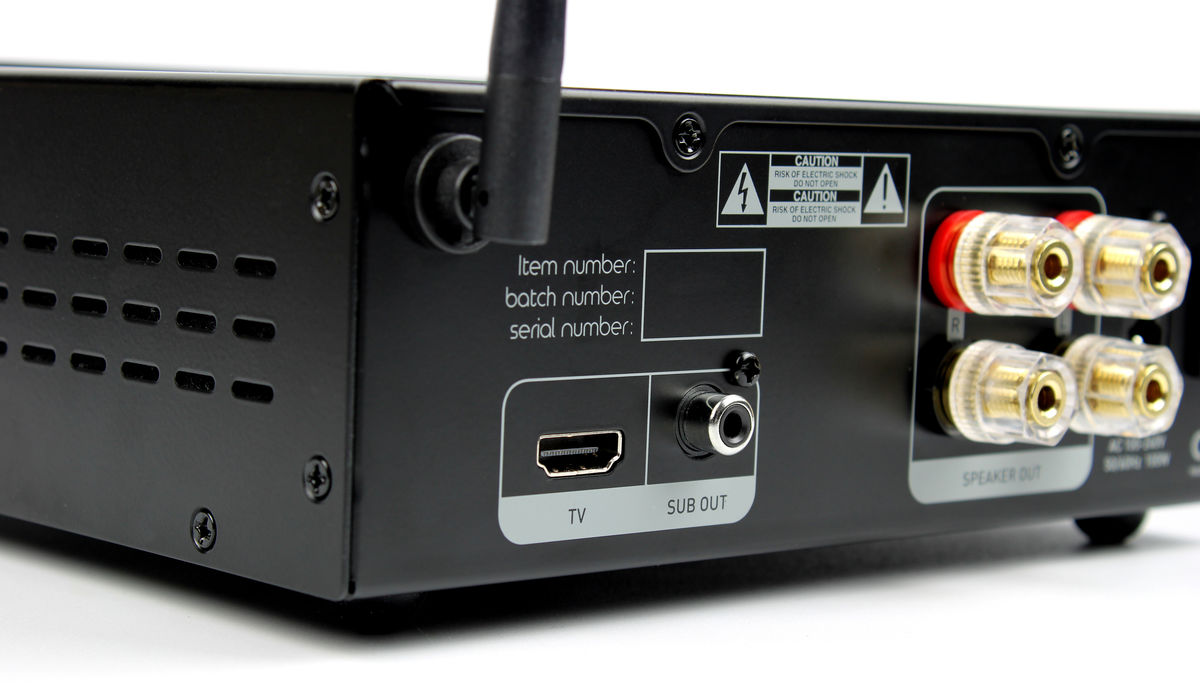 Branchement HDMI à la TV très simple. La connexion Bluetooth est correcte (elle a déjà été perdue une fois en pleine utilisation mais c'est rare). Rajouter une entrée et une sortie Jack pour pouvoir l'utiliser comme un DAC aurait été sympa (D'ailleurs impossible de savoir quelle puce est utilisée dans le DAC de cet article). La connectique est vraiment ultra limitée. Il faut bien réfléchir avant de l'acheter si vous n'avez pas 50euros à mettre en plus pour avoir un ampli plus polyvalent. Cependant, il fait bien le job.