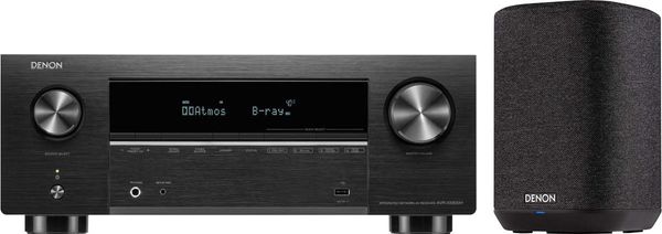 Ce pack home-cinéma Denon comprend l'ampli home-cinéma Denon AVC-X3800H ainsi que l'enceinte connectée Denon Home 150.