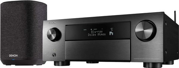 Ce pack home-cinéma Denon comprend l'ampli home-cinéma Denon AVC-X4700H ainsi que l'enceinte connectée Denon Home 150.