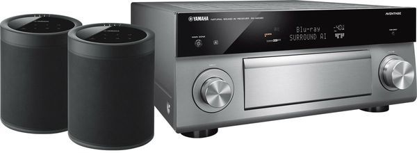 L'ampli home-cinéma 9.2 canaux de 140 watts Yamaha MusicCast RX-A2080 est ici associé à la paire d'enceintes connectées Yamaha MusicCast 20. qu'il est possible d'utiliser dans d'autres pièces du domicile ou en tant qu'enceintes surround sans fil pour le home-cinéma. Compatibles WiFi, AirPlay 2, Bluetooth et MusicCast, ces dernières peuvent être utilisées pour la reproduction des canaux surround afin de profiter d'un son multicanal avec un minimum de câbles d'enceintes.