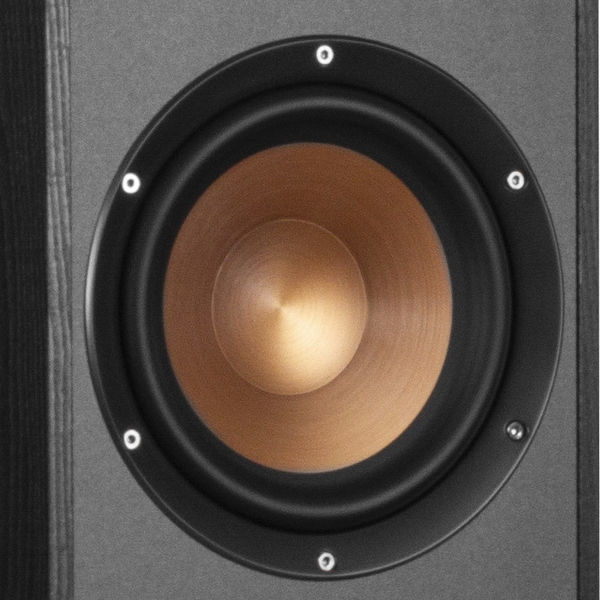 L’enceinte colonne Klipsch Référence R-620F intègre deux haut-parleurs de grave-médium de type IMG de 16,5 cm de diamètre. Leur membrane est fabriquée avec du graphite injecté, ce qui la rend à la fois très légère et rigide. Elle est recouverte d’une fine couche de cuivre, qui lui donne sa couleur orangée. La charge bass-reflex de cette enceinte lui permet de reproduire les basses fréquences jusqu’à 38 Hz, avec puissance. L'évent, situé à l'arrière de l'enceinte, est un modèle Tractrix (carré évasé), afin d'optimiser la vélocité des basses-fréquence en sortie d'enceinte.
