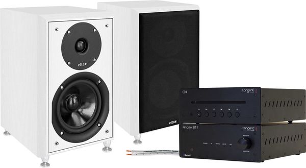 L'ensemble Tangent Ampster BT II + Tangent CD II + Eltax Monitor III comprend l'amplificateur hi-fi Tangent Ampster BT II, le lecteur CD Tangent CD II, la paire d'enceintes compactes Eltax Monitor III et 5 mètres de câble d'enceintes Norstone W250.