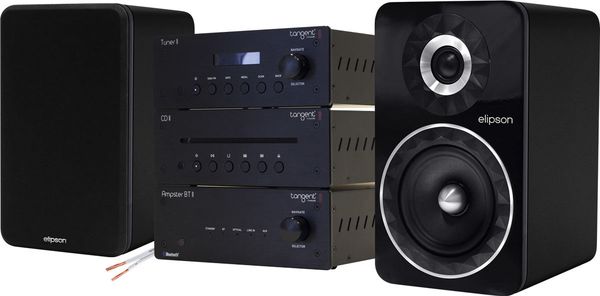 Cette chaîne fi-fi composée comprend l'ampli DAC Tangent Ampster BT II, le lecteur CD Tangent CD II, le tuner Tangent Tuner II, la paire d'enceintes compactes Elipson Prestige Facet 6B et 5 mètres de câble d'enceintes NorStone W150.