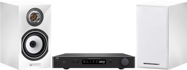 La chaîne NAD C338 / Triangle Titus Ez comprend l'ampli stéréo avec DAC intégré NAD C338 et la paire d'enceintes compactes Triangle Titus Ez.