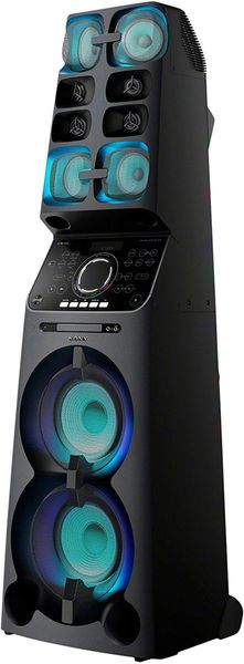 La chaîne Sony MHC-V90DW est vraiment un modèle atypique et fait presque figure d'OVNI dans l'inventaire de ce que propose le fabricant nippon en termes de matériel audio et vidéo. Il faut dire qu'avec 1,71 mètre de hauteur, un peu plus de 50 kg sur la balance, deux gros boomer de 25 cm et ses jeux de lumières multicolores, cette chaîne connectée à de quoi surprendre.