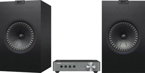 L'ampli connecté Yamaha WXA-50 est ici associé à la paire d'enceintes compactes KEF Q350 dotée d'un haut-parleur UniQ de 16,5 cm de diamètre à technologie coaxiale. Comme son nom l'indique, un haut-parleur coaxial voit ses transducteurs partager un même axe de diffusion, de manière à émettre le son depuis un point unique (UniQ). Le coaxial est composé d'une membrane en aluminium et d'un tweeter ventilé de type dôme, également en aluminium. Ce dernier est surmonté d'un guide d'onde et chargé par un tube évasé, afin d'amortir les ondes arrière et ne pas perturber la restitution. Il est donc isolé du reste du volume, accordé par un évent bass-reflex optimisé (dynamique des fluides). L'enceinte KEF Q350 répond ainsi en fréquence jusqu'à 63 Hz (42 Hz avec -6 dB).