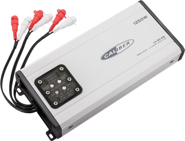 Conçu pour être monté dans une embarcation, l'amplificateur embarqué Caliber CA80.4M est étanche à l'eau (certifié IPX6, câbles pré-connectés avec joints étanches) et résistant au sel et aux UV. Par ailleurs, il dispose d'une protection thermique contre les surcharges et les courts-circuits.
