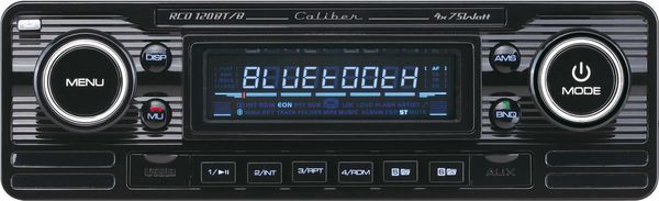 Malgré son apparence vintage, l'autoradio Caliber RCD 120BT dispose de tout le nécessaire pour profiter au mieux de ses musiques en voiture : amplification généreuse, tuner FM RDS, lecteur CD, port USB, lecteur de carte mémoire SD/MMC et même un récepteur Bluetooth compatible téléphonie mains-libres.